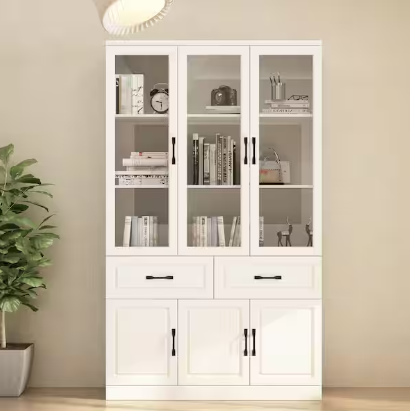 White Wood Storage Cabinet With Adjustable Shelves, Glass
