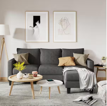 70 in. Classic L-Shaped Sectional Sofa Reversible Linen