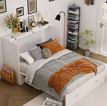 White Wooden 55.1 in. W Chest of Drawers, Can Convertible to Full Size Bed with USB Charging Station and Wheels