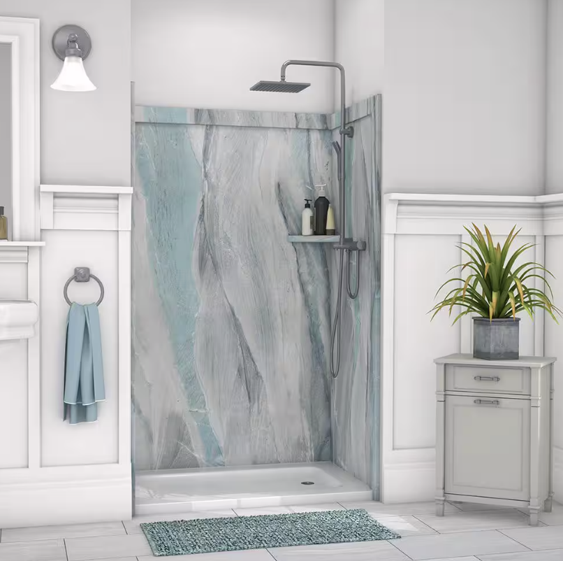 Elegance 36 in. x 48 in. x 80 in. 9-Piece Easy Up Adhesive Alcove Shower Wall Surround in Triton