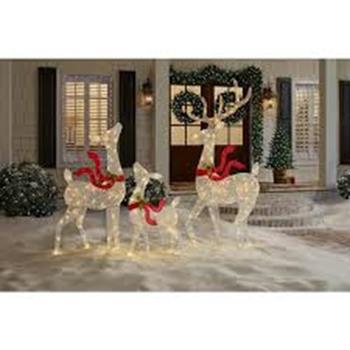 Home Accents Holiday 3-Piece LED Deer Family Holiday Yard Decoration.