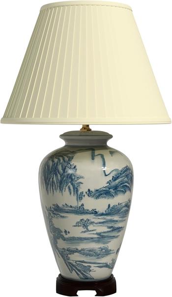 Oriental Furniture 29 Blue and White Chinese Landscape