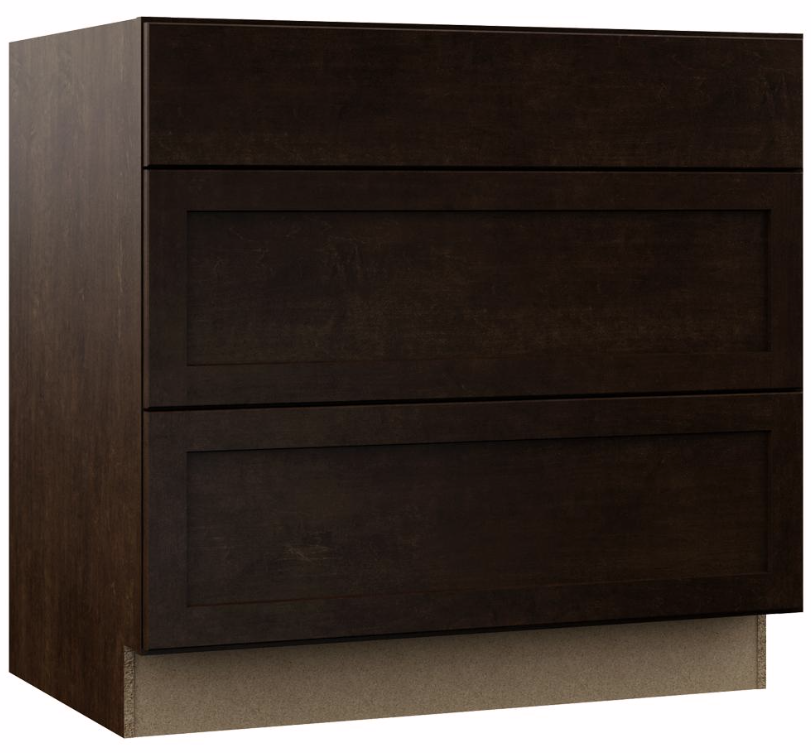 Shaker 36 in. W x 24 in. D x 34.5 in. H Assembled 3 Drawer Base Cabinet in Java