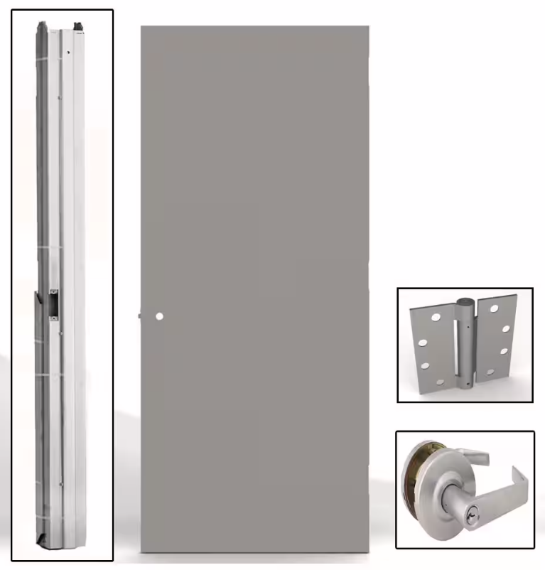 36 in. x 80 in. Gray Flush Steel Commercial Door with Hardware