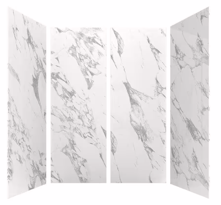 60 in. L x 36 in. W x 84 in H Glue-Up Alcove Solid Composite Stone 4-Piece Shower Wall Set in Carrara- 2 Boxes