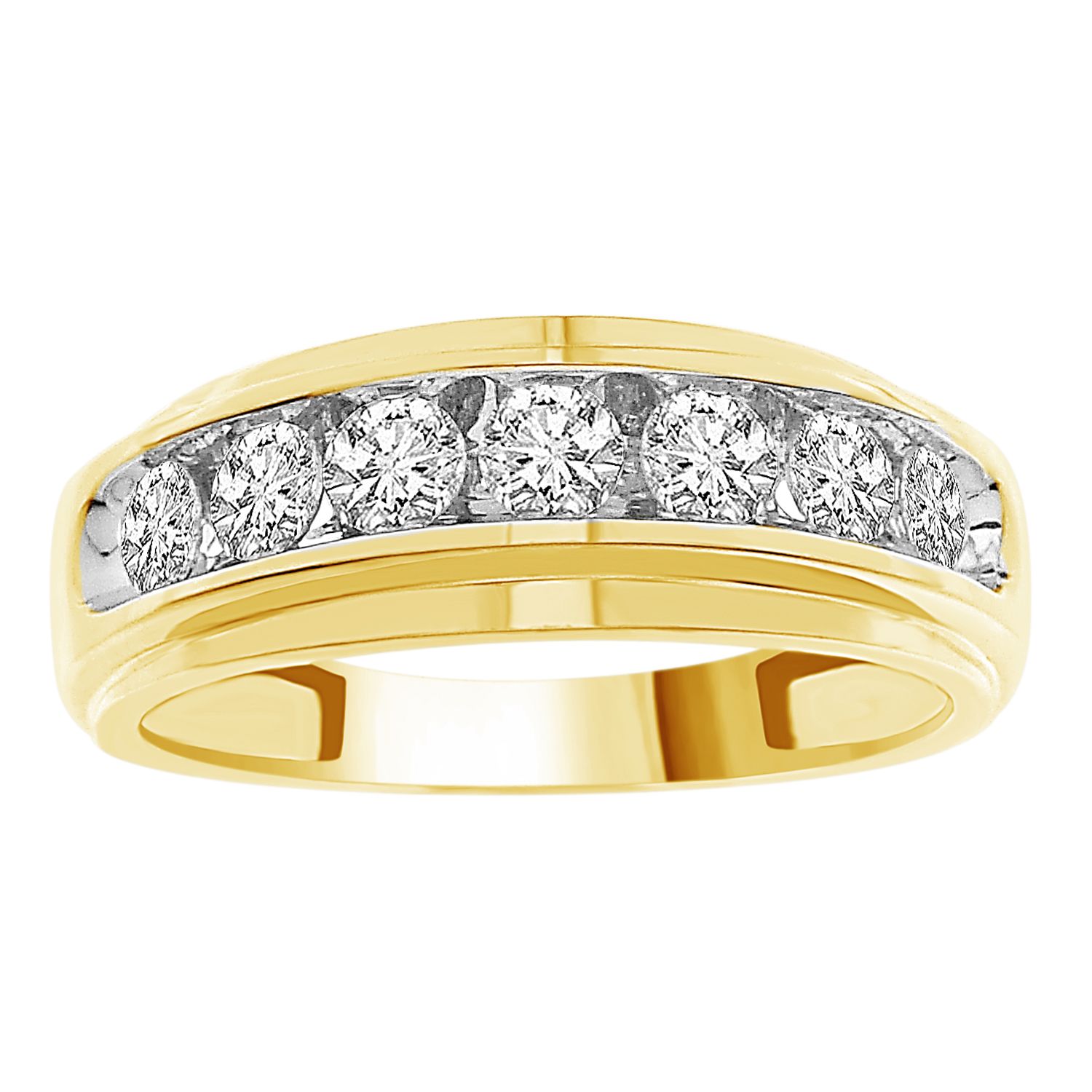 Building has a YELLOW STRIPE AROUND THE TOP.